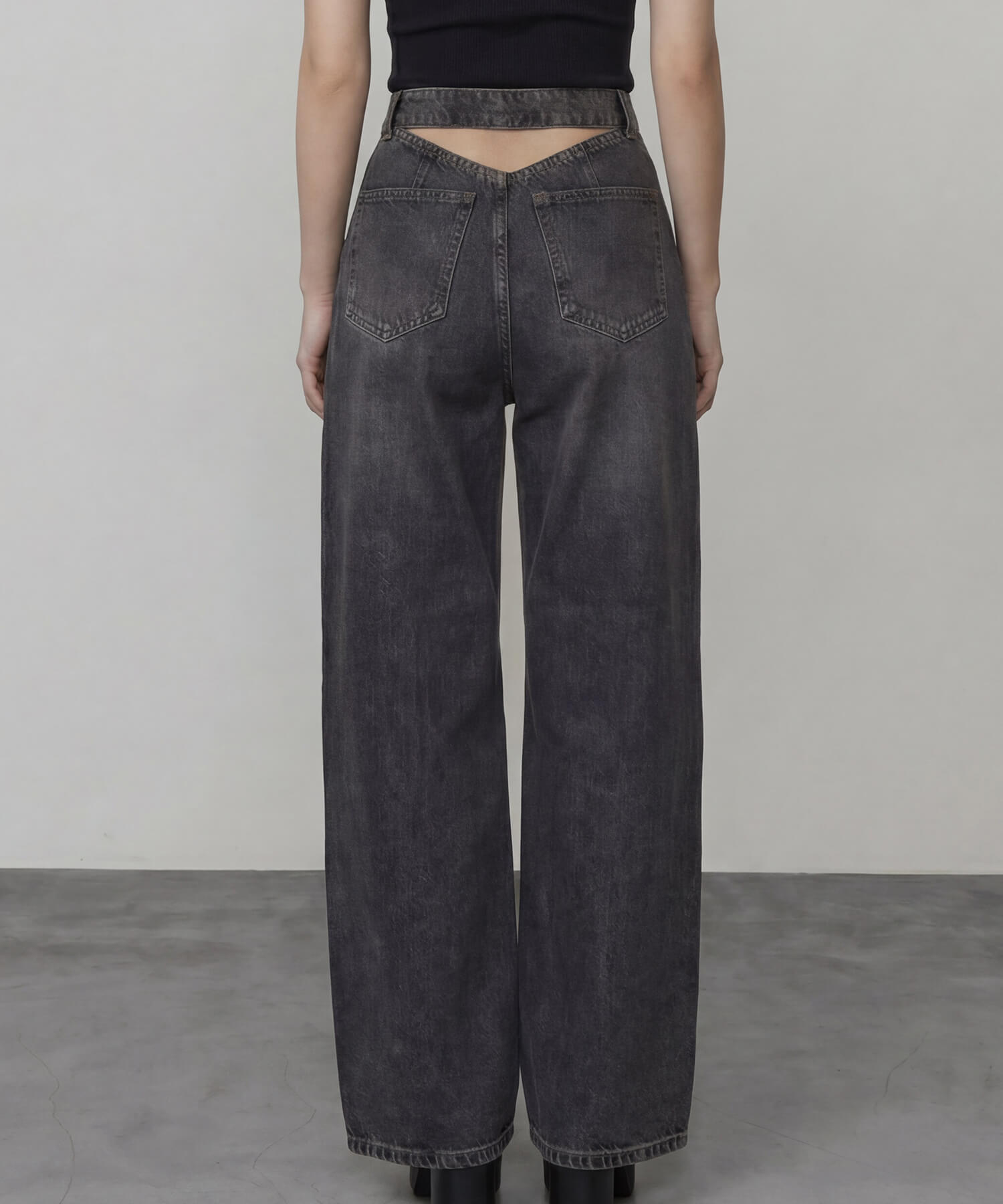 バックトライアングルカットデニムパンツ