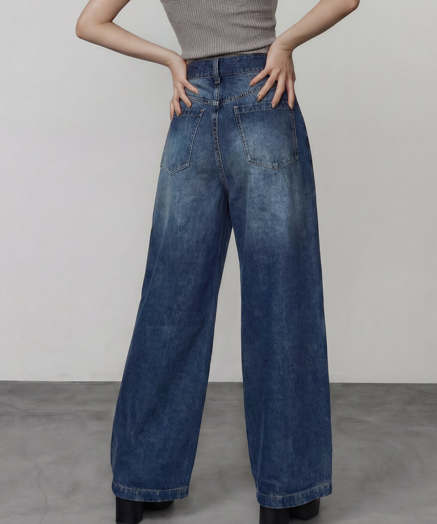 程よいハイウエストで腰周りはすっきり&もたつき感のないヒップラインで、ワイドなシルエットながらも、美脚&スタイルアップ見えするレッグラインへのこだわりが詰まった1本です。