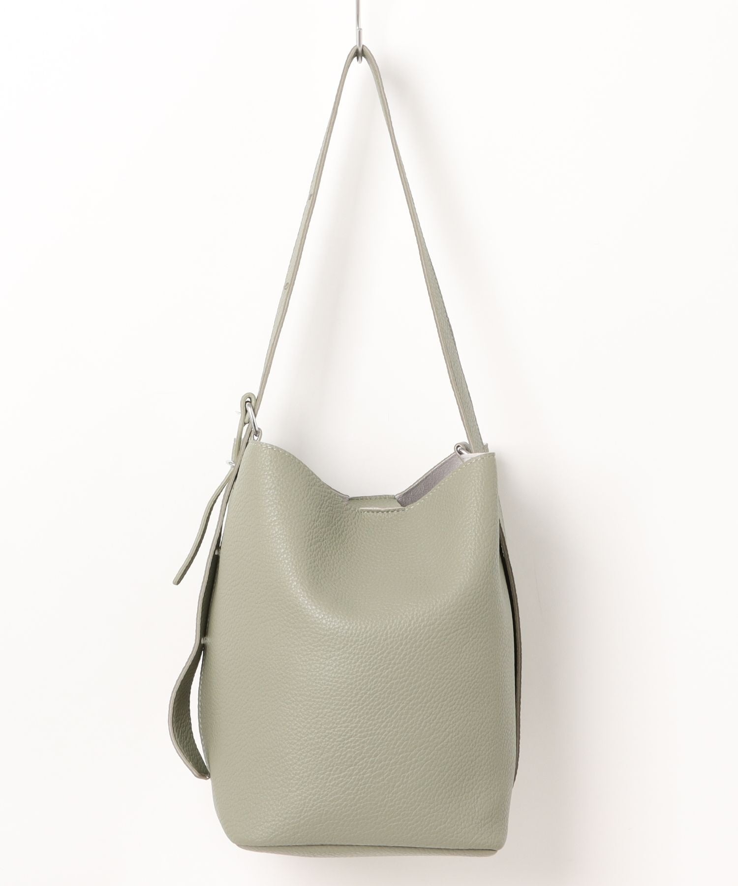 同生地のポーチが付属する、大容量バケツ型ワンショルダーバッグ。